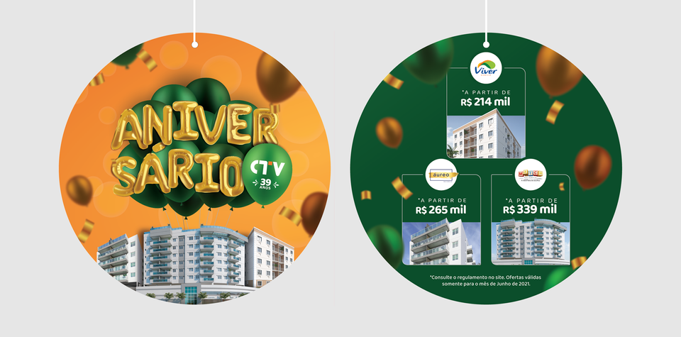 Em 2021 a Construtora Tavares e Videira completou 39 anos de vida. Para essa data tão especial planejamos celebrar em grande estilo, com um feirão de imóveis e um grande evento. Confira todos os materiais desenvolvidos para essa data.